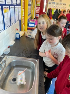 All classes in the school were very fortunate to attend science workshops with Jane Mc Loughlin on Friday. She carried out many experiments