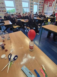 Rang 4 learned that when baking soda and vinegar are mixed it creates a chemical reaction. The gas carbon dioxide is released. This gas inflated
