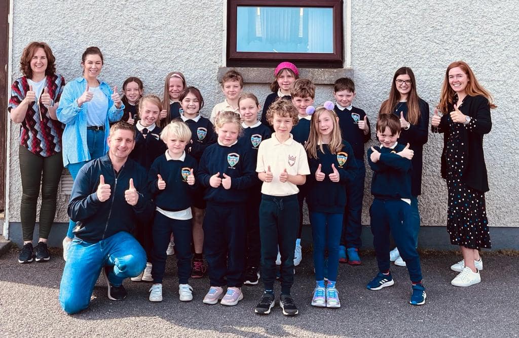 In May, Scoil Naomh Sheosaimh received the Amber Flag. This flag recognises schools that promote positive mental health. There is an Amber Flag Committee with representatives from each class. In June, Galway Senior football captain Seán Kelly visited Scoil Naomh Sheosaimh to raise our Amber Flag.