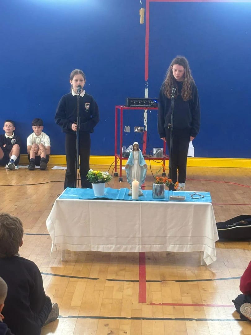 Children from Rang 5 led this prayer service. The children then said one decade of the Rosary together.