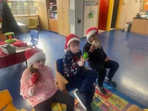 We had a Christmas sing along today. We used our instruments. We sang lots of Christmas songs and read a Christmas poem. We wore Christmas