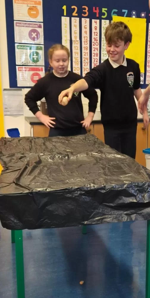 In this experiment Rang 5 learned that the vinegar reacts with the calcium carbonate in the eggshell. This chemical reaction creates a gas and dissolves the hard eggshell. The membrane is surprisingly strong and can bounce!