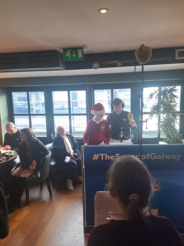 Today Rang 5&6 travelled to the Twelve Hotel in Barna to sing Christmas carols. It was very exciting as Galway Bay Fm were broadcasting live from the hotel and the children got to sing a song live on the radio! The children sang beautifully and represented their school excellently. Well done to all!
