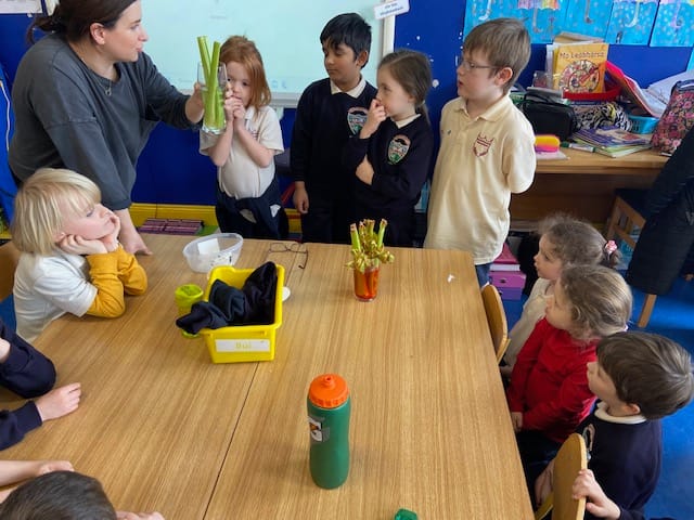We completed an experiment called rainbow celery . We put celery in water with some drops of good colouring. We ...