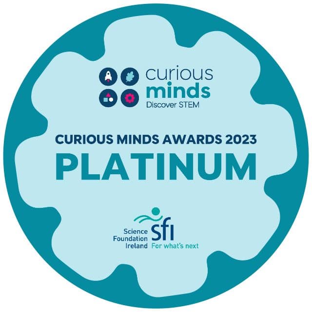 Each year Scoil Naomh Sheosaimh participates in the Discover Primary Science Award. We now have seven Discover Primary Science and Maths awards. In June we were awarded our latest science award – a Curious Minds Platinum Award.
