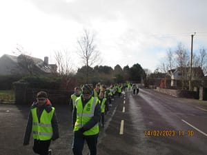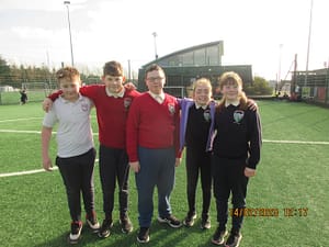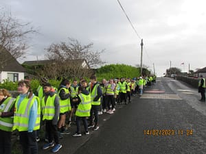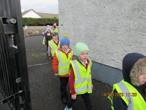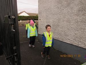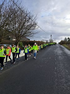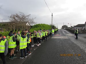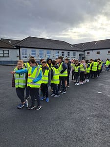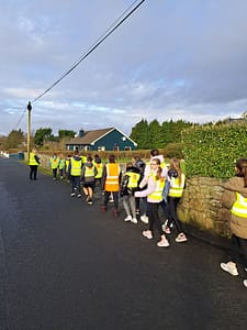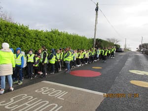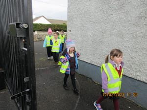Children from Naíonáin Bheaga to Rang 2 then began their walk around the school grounds. Rang 3 to Rang 6 walked to Drum soccer ground. Here they enjoyed games of soccer and healthy snacks before they began the walk home. Lessons continued back at school based on the theme of travel. Well done to everyone on their excellent work!