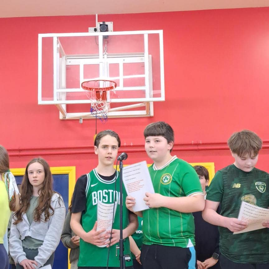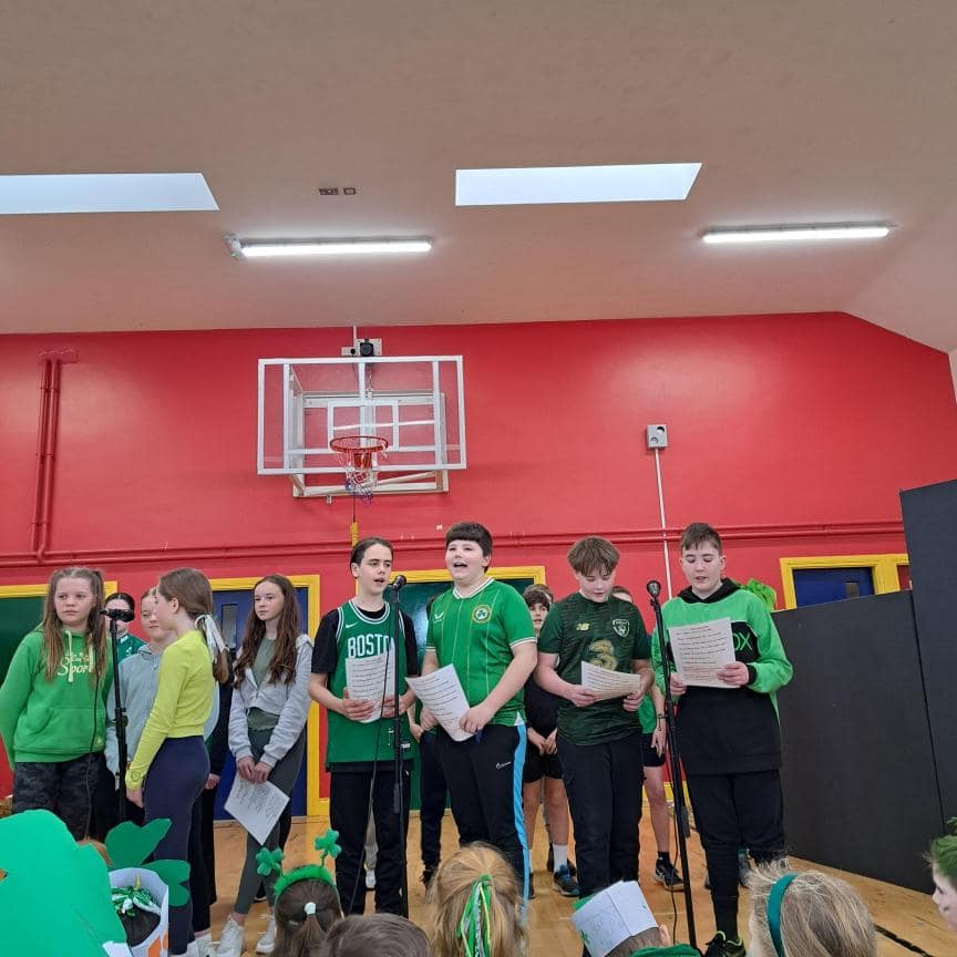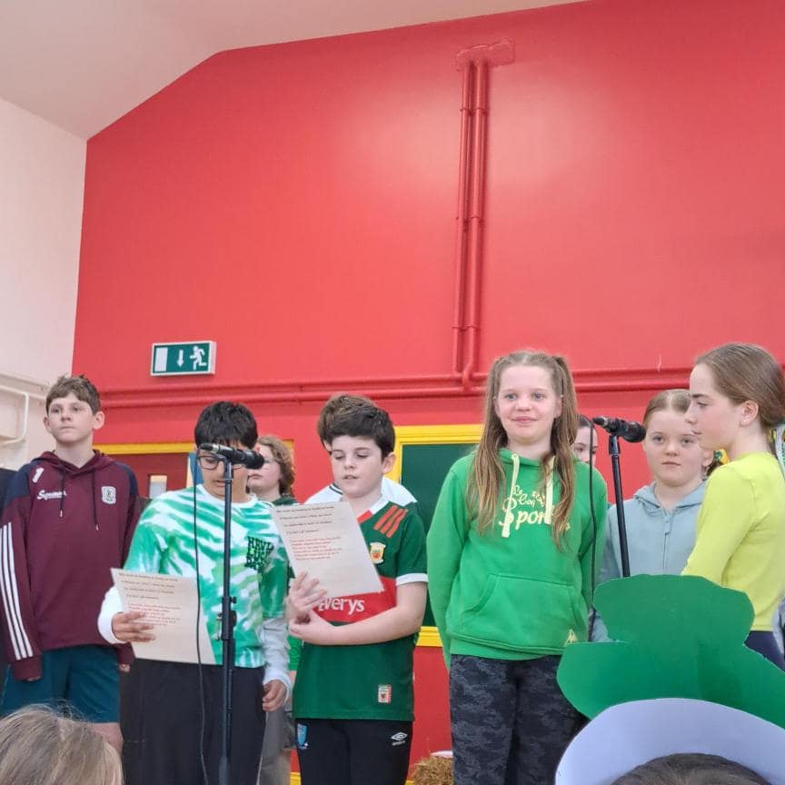 At Friday’s assembly, children displayed the wonderful work that has been taking place here in Buaile Beag for Seachtain na Gaeilge. Children from Naíonáin Bheaga, Naíonáin Mhóra, Rang 1, Rang 2 and Rang 6 recited Irish poetry, sang traditional Irish songs and performed traditional Irish dances. Assembly concluded with the entire school dancing to “An Dreoilín” which was led by Rang 6. Well done to all!